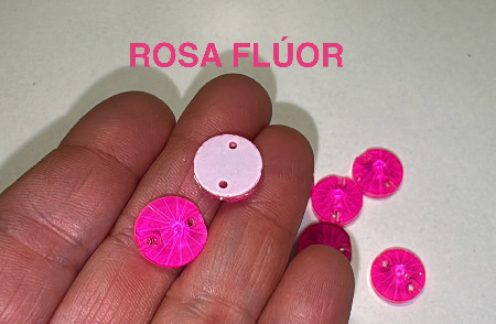 Colores : Rosa FlúorTamaño 10mm, 12mm y 14mmmaterial : CRISTALRespaldo plano2 agujeros para coser
