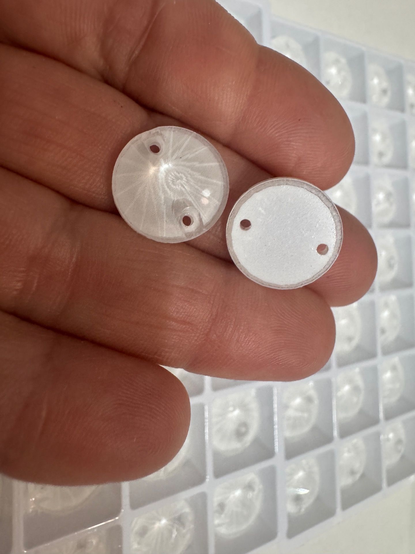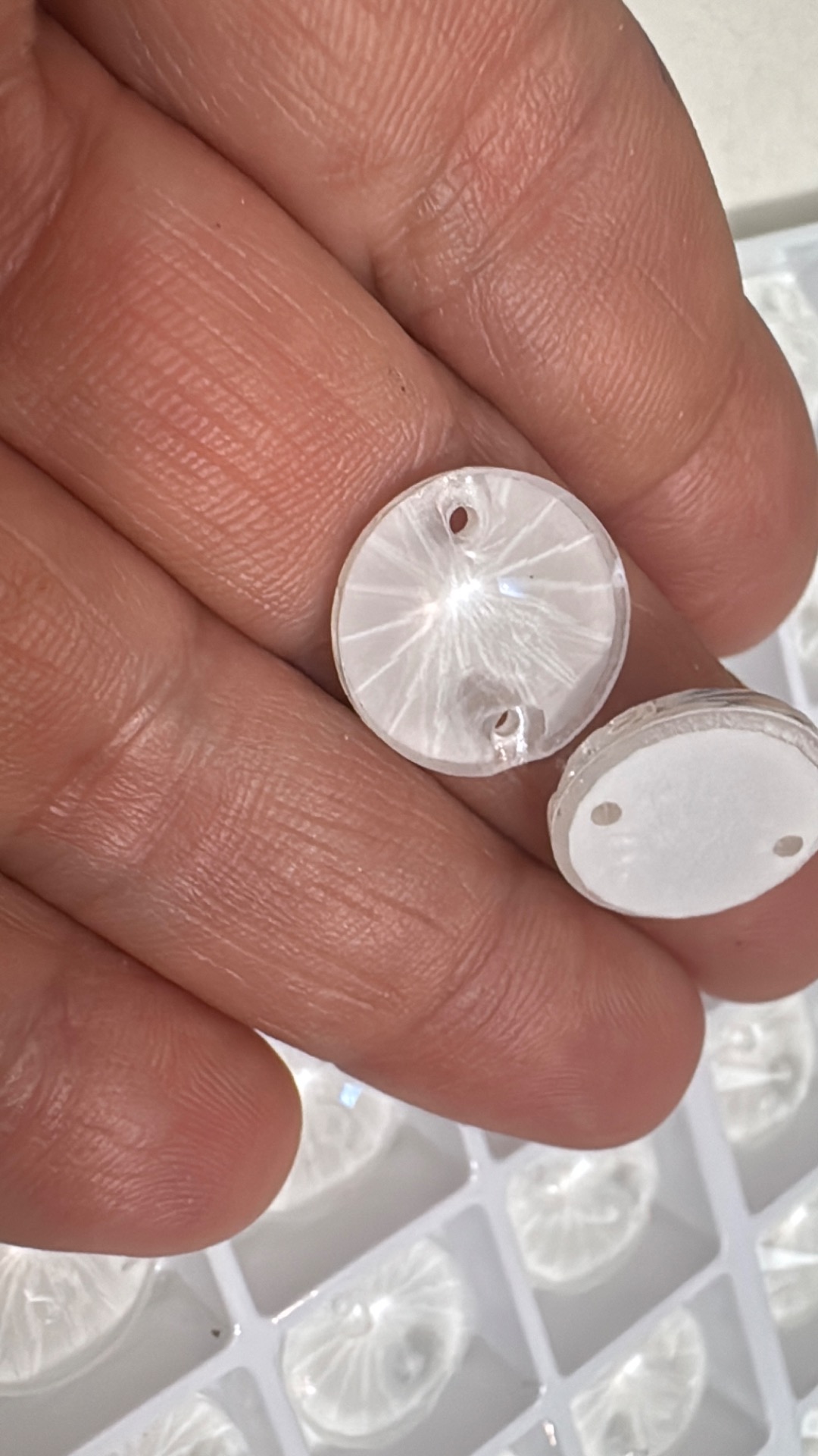 Colores : Blanco FlúorTamaño 10mm, 12mm y 14mmmaterial : CRISTALRespaldo plano2 agujeros para coser