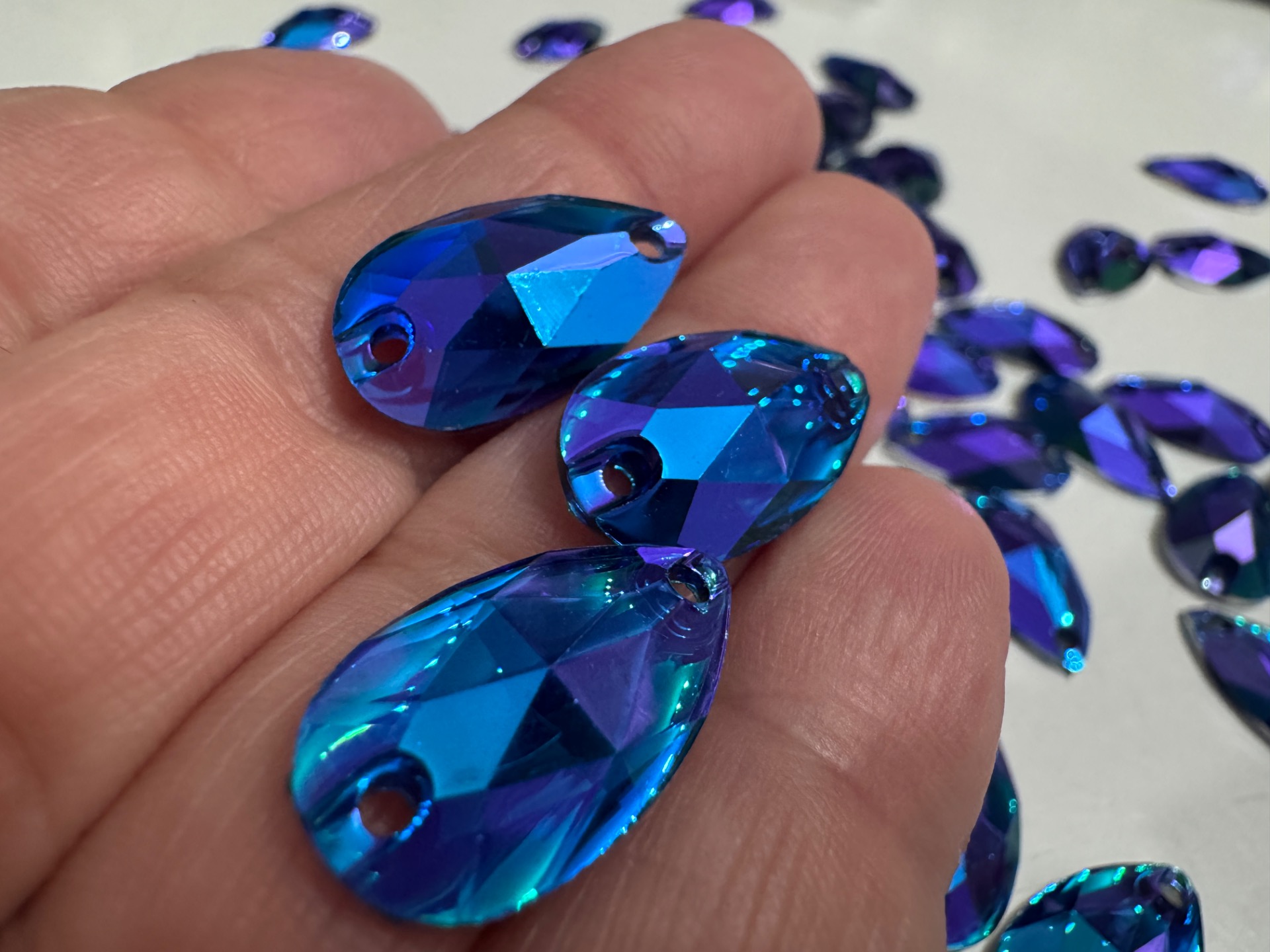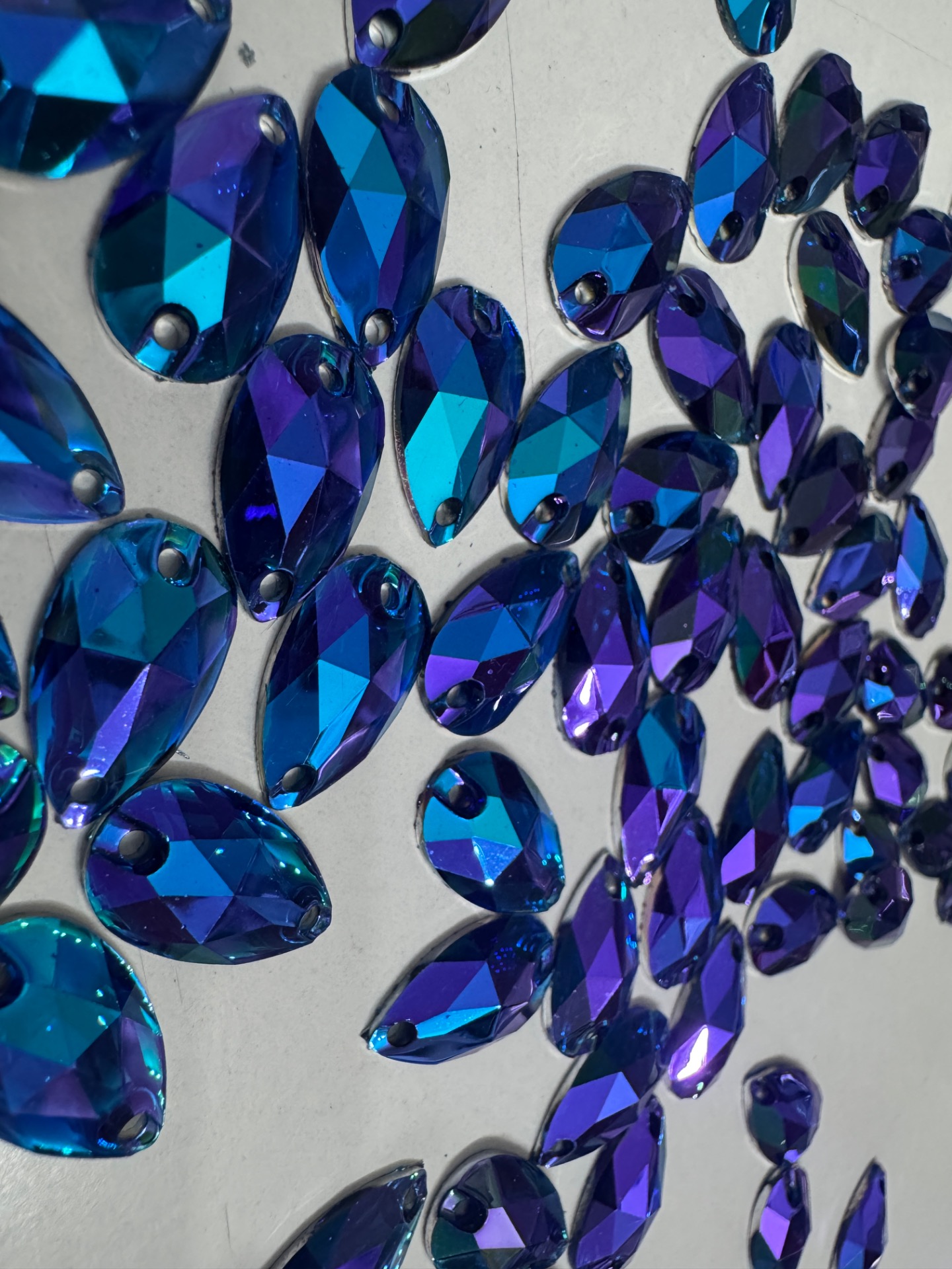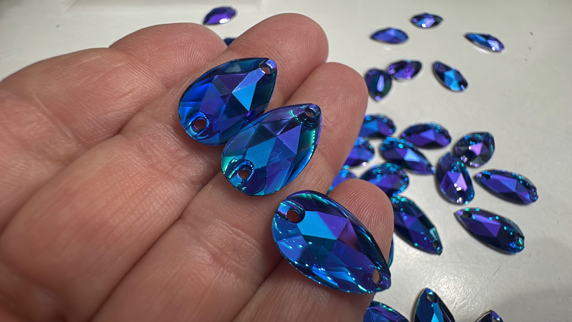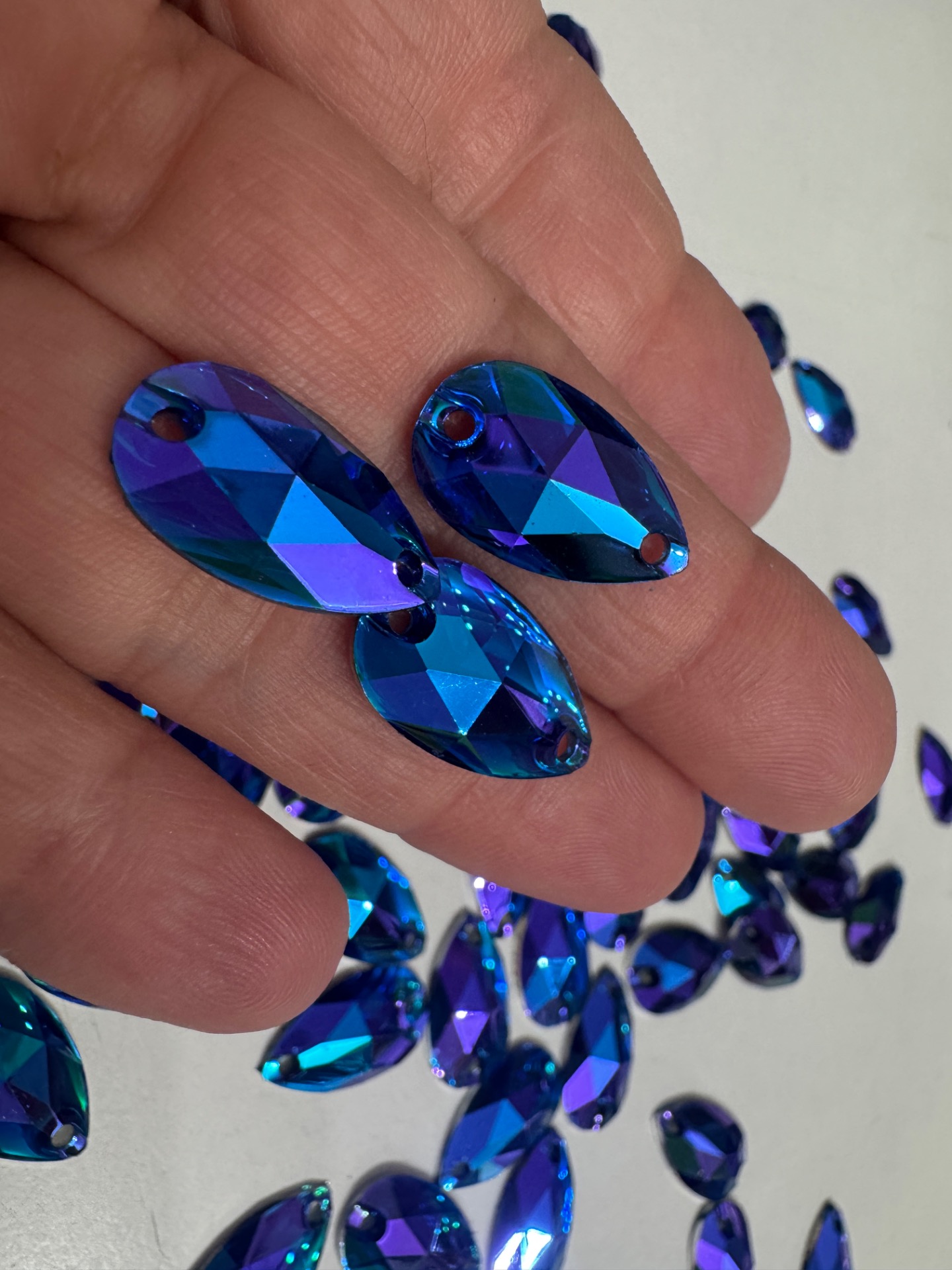 Material Acrílico Color Azul ( con destellos verde/azulado)Medida : 10x18mmRespaldo Plano2 Agujeros para coser