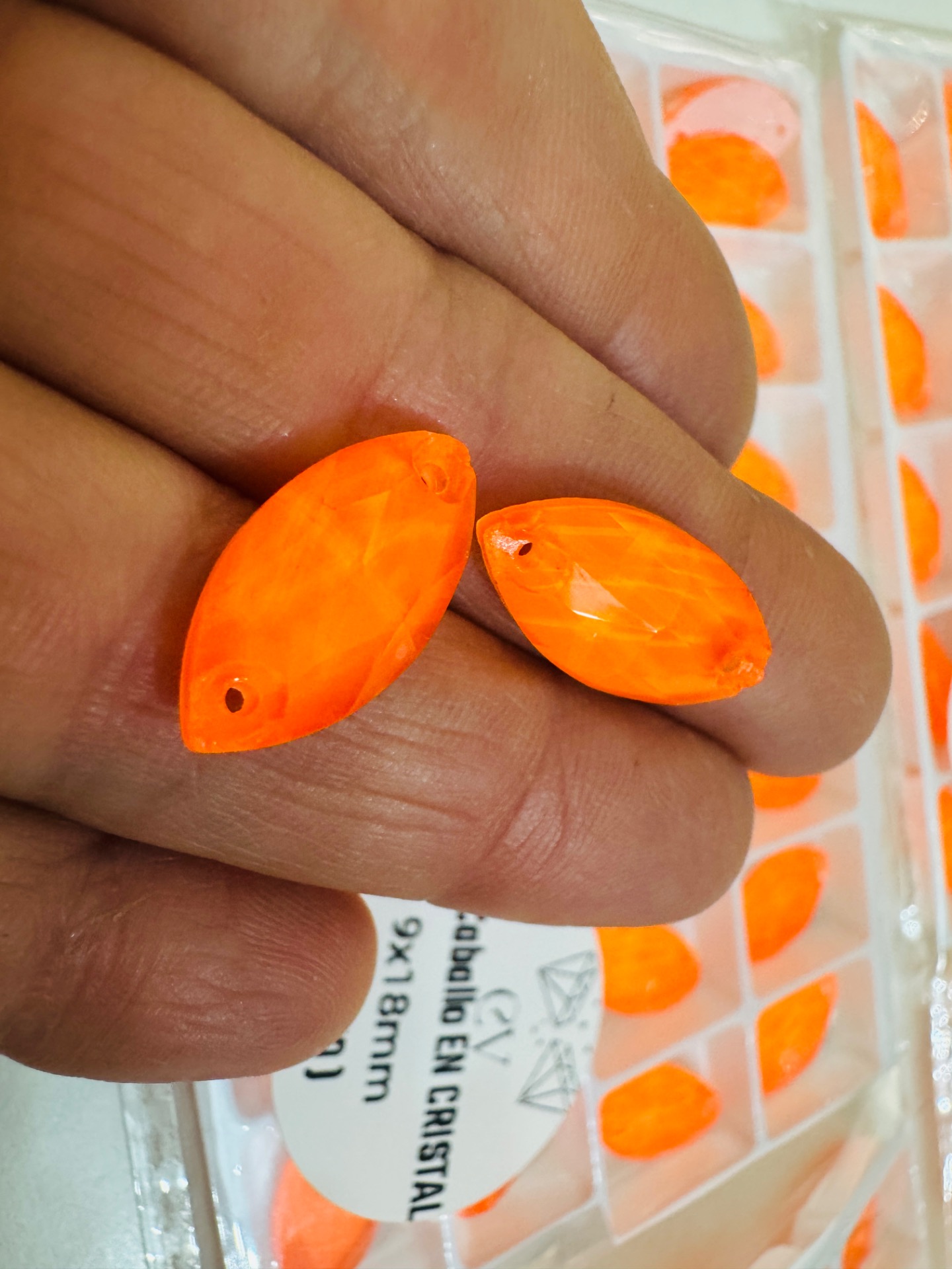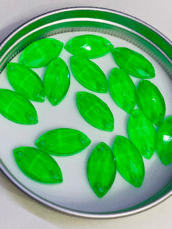 Material CRISTALTamaño 7x15mm y 9x18mm Color Verde Flúor Respaldo plano2 Agujeros para coser