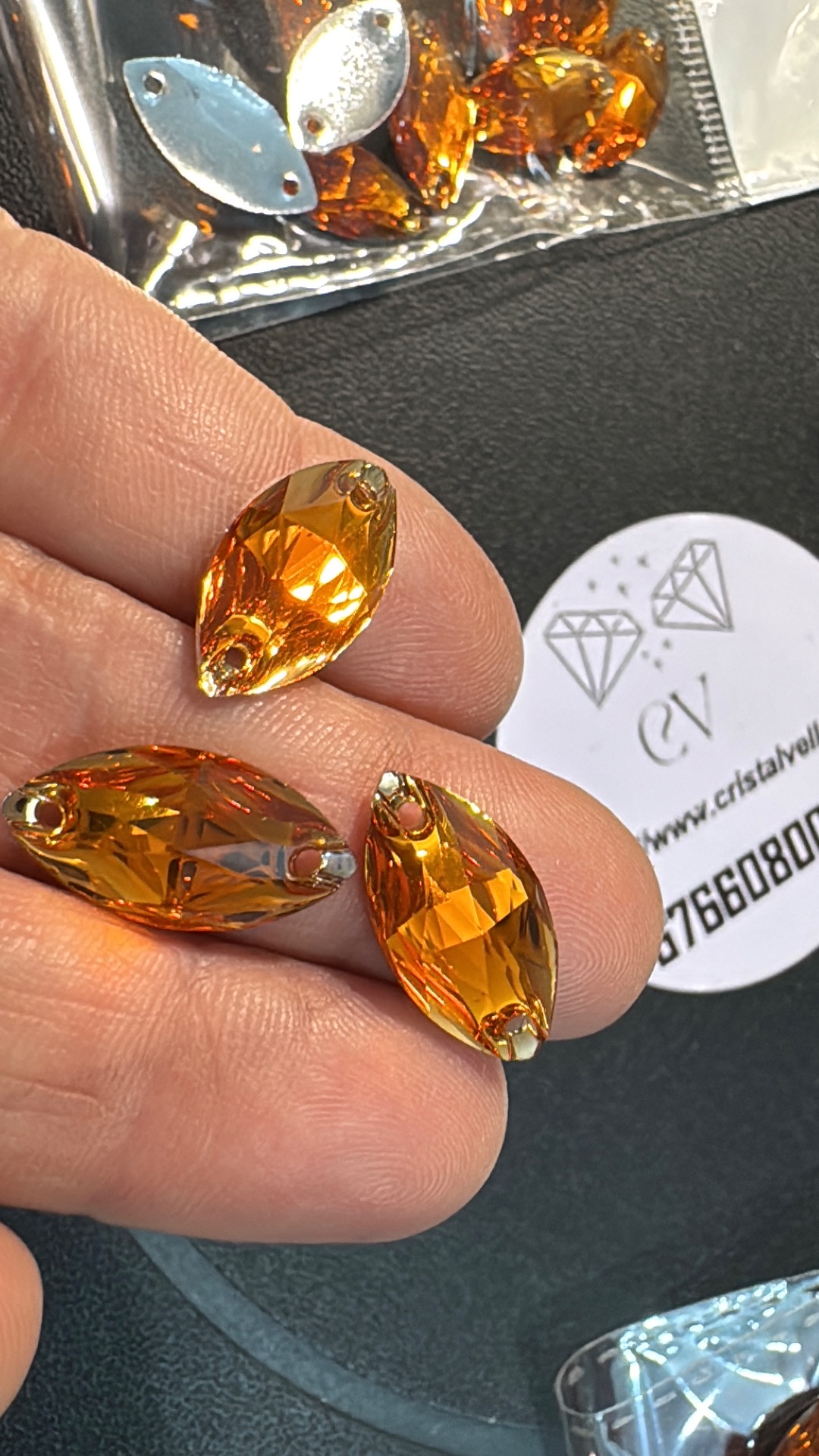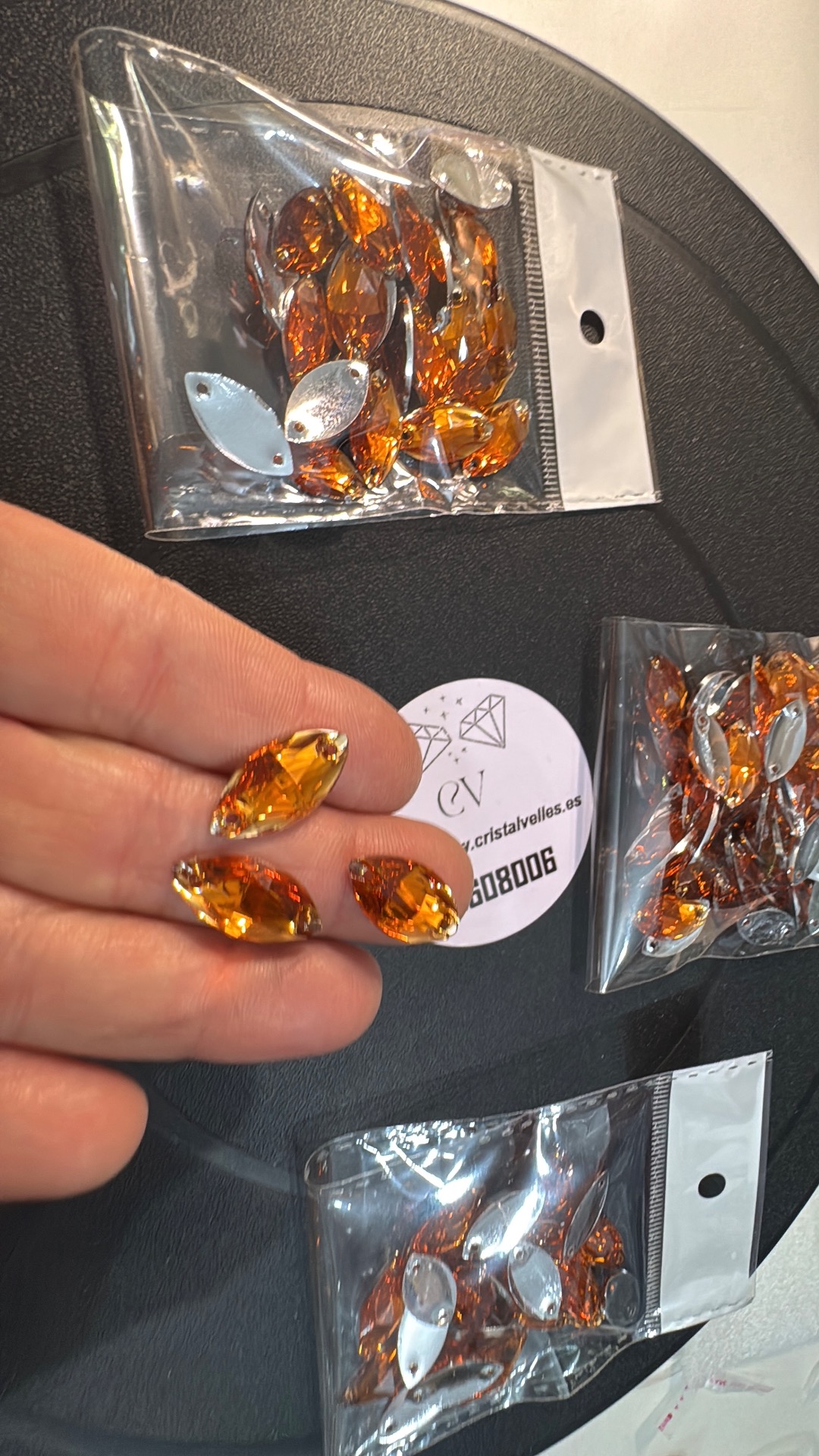 Material Acrilico Forma de Ojo de caballo Medida : 9x18mmColor : Naranja respaldo Plano2 Agujeros para coser